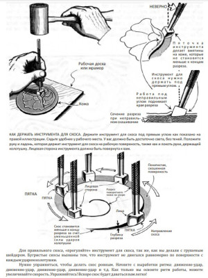 Иллюстрации, подробное описание: резьба по коже, процесс изготовления изделии, что необходимо при работе и многое другое + в конце есть шаблоны выкроек изделий.