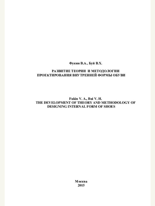 Развитие теории и методологии проектирования внутренней формы обуви Фукин В.А. Буй В.Х. 2015