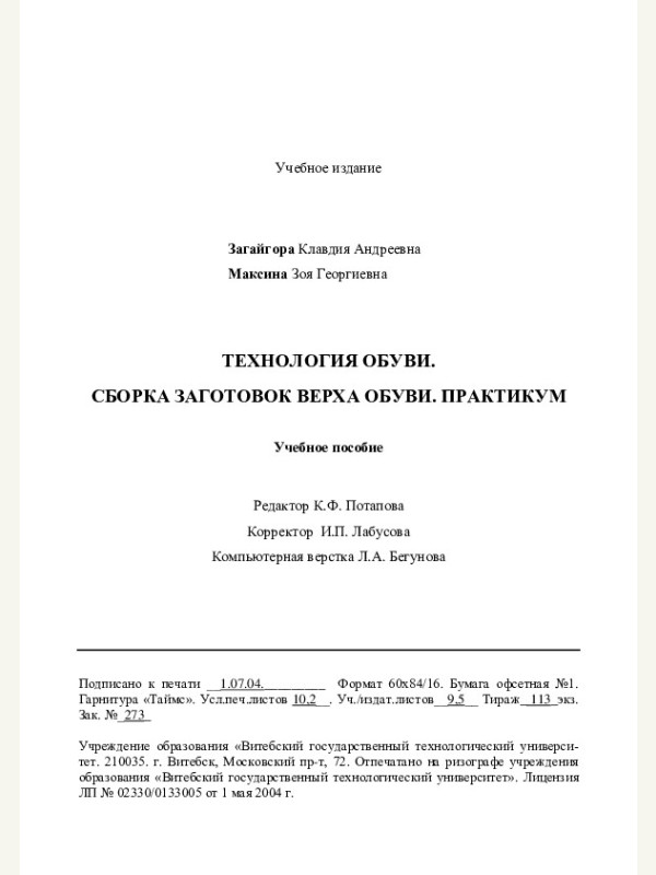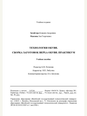 Технология обуви Сборка заготовок верха обуви Практикум Загайгора К.А. Максина З.Г.