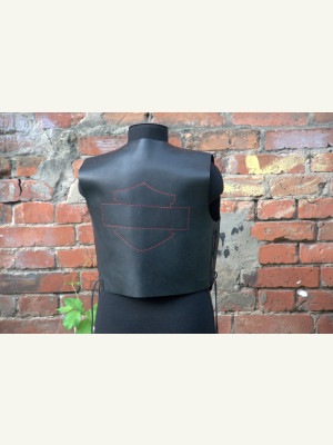 P.S. Заказчик принёс аппликацию со своим логотипом вышитую на ткани. Начал пришивать- получилась полная фигня... Решили убрать! Но, остались отверстия на кофте- то... Пришлось красной нитью хоть пройти. Заказчику такой вариант понравился. Хотя получилось-то, не айс, как ровно. Зарекался ведь, из тряпок на кожу ничего не пристраивать! Вот результат... ???