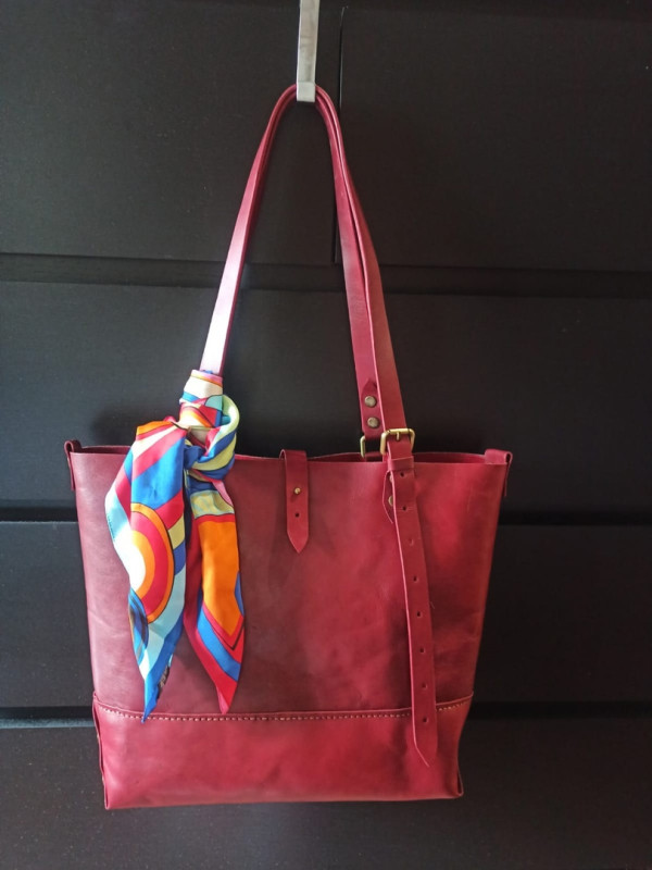 На выходных у супруги появился ещё один шопер, полюбившегося дизайна в размере от оригинальной выкройки 80%. Кожа юфть от V. I. B. Leather: vk.com Оранж-vk.com Вишня-vk.com