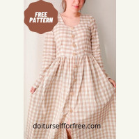 Выкройка женского тканевого платья с длинными рукавами и закрытым воротом размер XXS-4XL