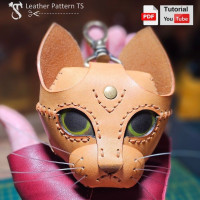 Выкройка кожаный брелок/кейс для наушников на сумку в виде головы кошки