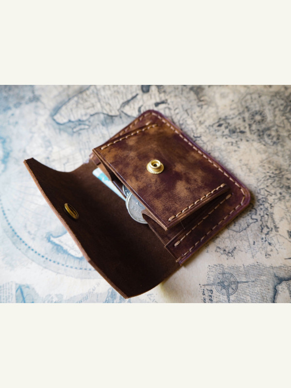 Совсем небольшой кошелек.Я бы сказал кошелек для тринадцатой зарплаты? Входят карта,немного мелочи и немного бумажных денег. Войдёт в любой,даже самый маленький карман.