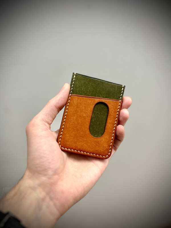 Сделал выкройку вот такого очень простого, но по-моему, весьма привлекательного кардхолдера. Думаю подойдет новичкам, ну или просто кому то приглянется. Кожу использовал Pueblo, шаг пробойника 4мм.