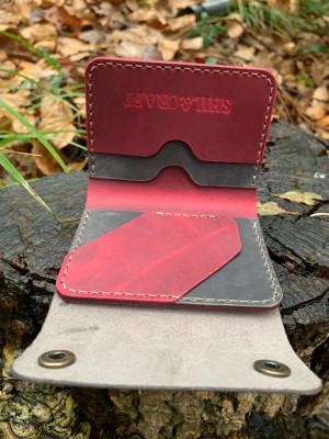 Делал вот такой картхолдер или кошелёк, очень интересный получился, если не пришивать заднюю часть то получится картхолдер, если пришивать то кошелечик, в общем мне зашёл!