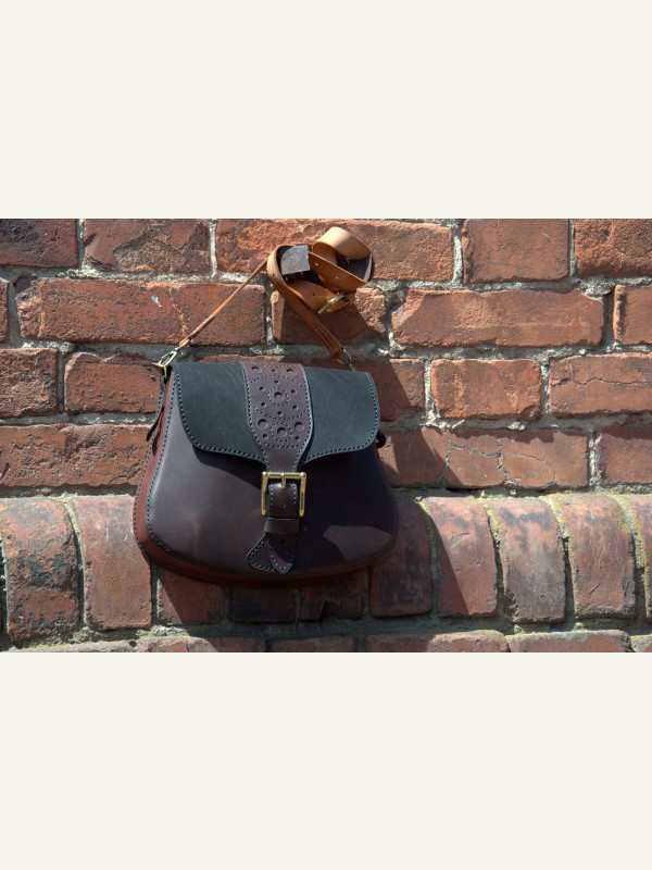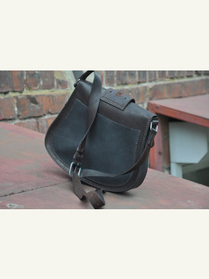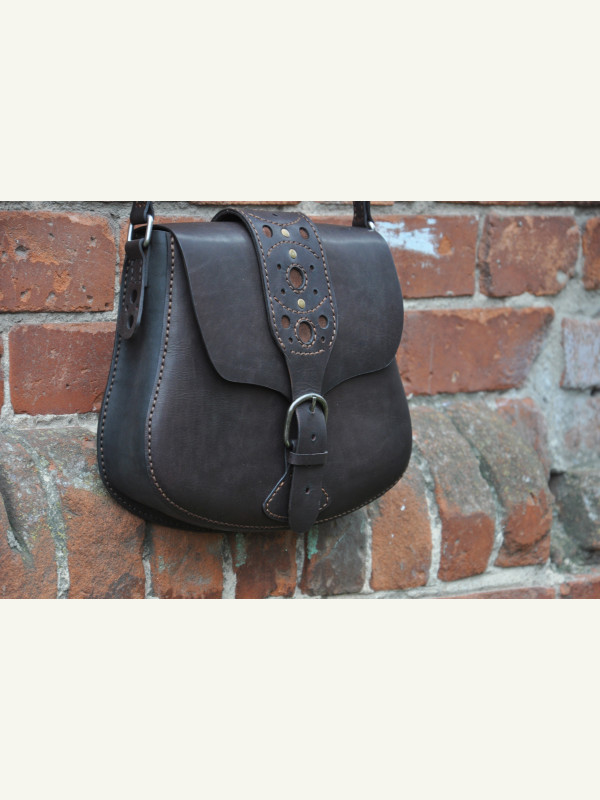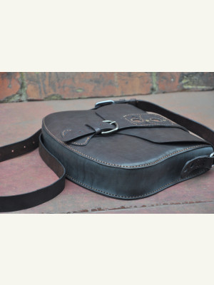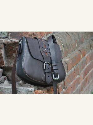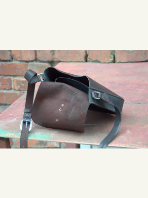 Я прикрепил тремя заклёпками. В предыдущей сумке эту накладку пришивал к клапану (последнее фото в галерее).